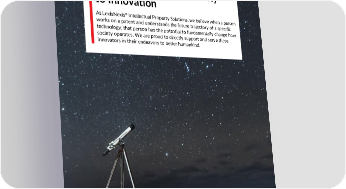 www.LexisNexisIP.com www.LexisNexisIP.com Our Mission: Bringing Clarity to Innovation At LexisNexis® Intellectual Property Solutions, we believe when a person works on a patent and understands the future trajectory of a specific technology, that person has the potential to fundamentally change how society operates. We are proud to directly support and serve these innovators in their endeavors to better humankind.